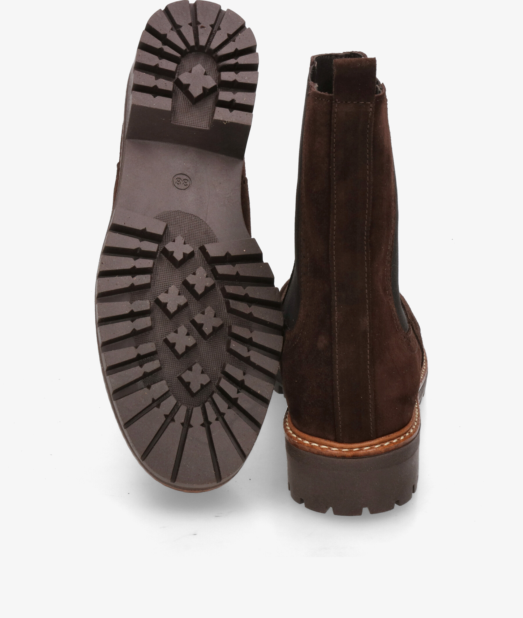 Botines bloom&you VIRGINIA en serraje marrón. Cierre con elásticos . La plantilla no es extraible. Hecho en España.