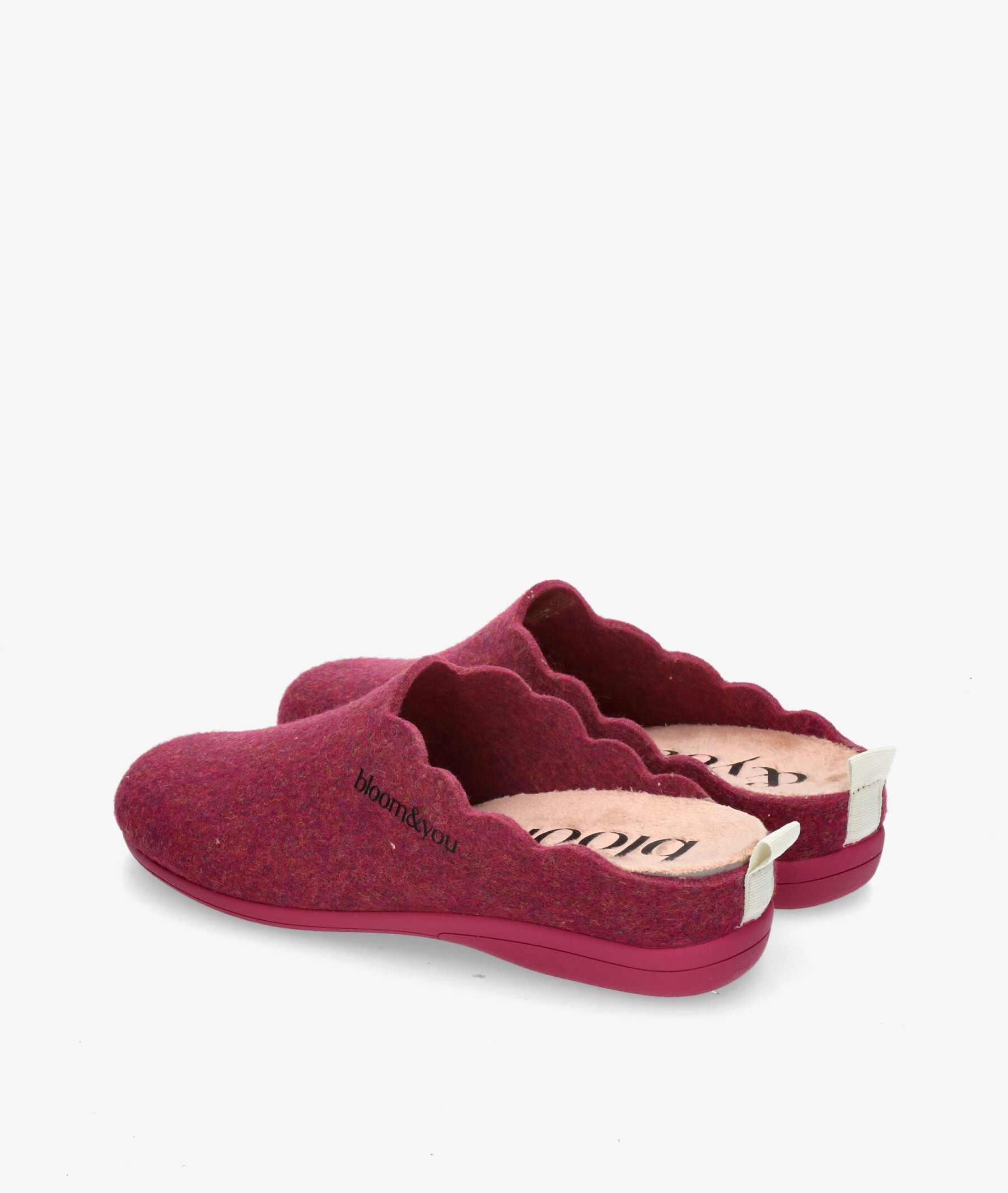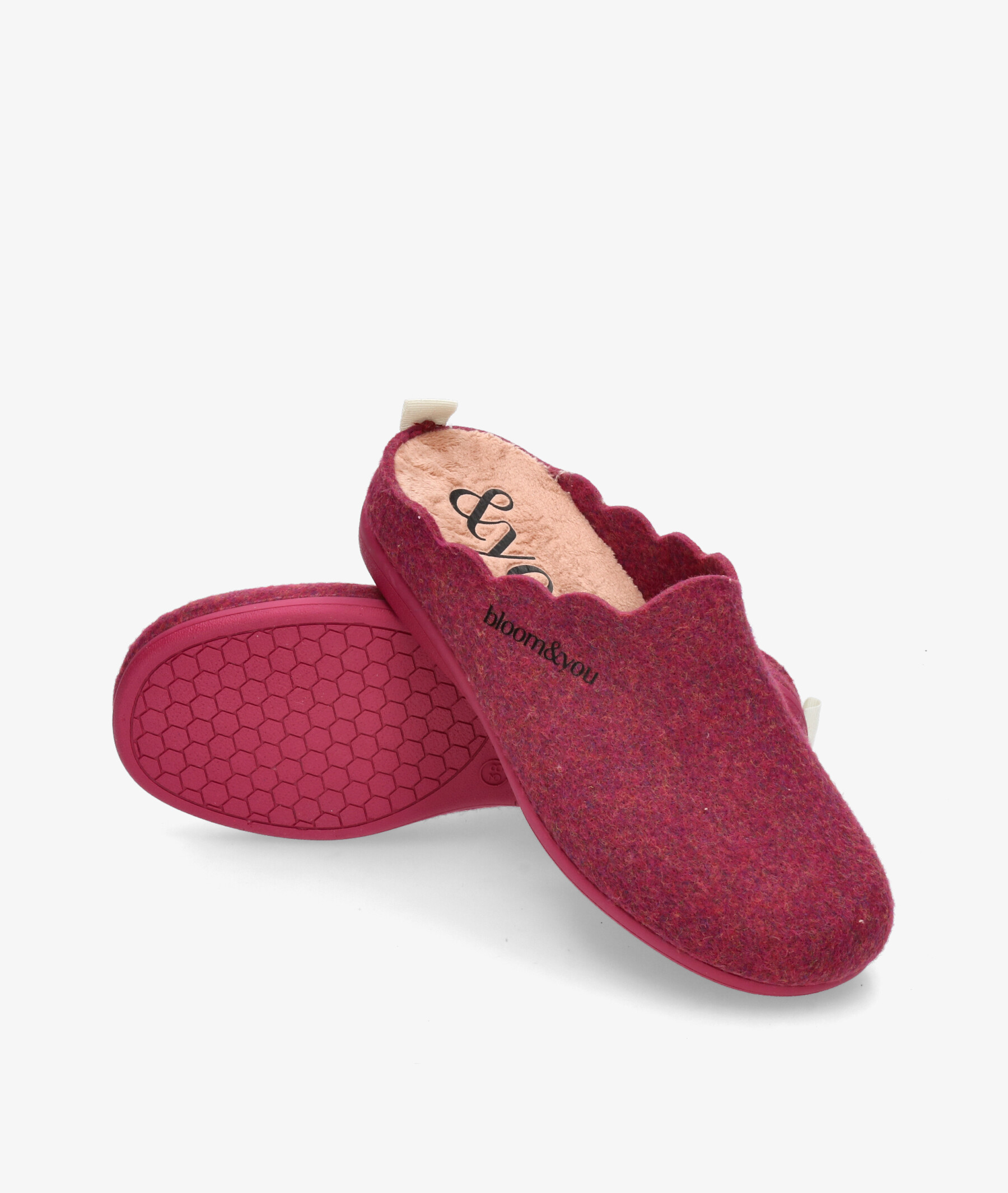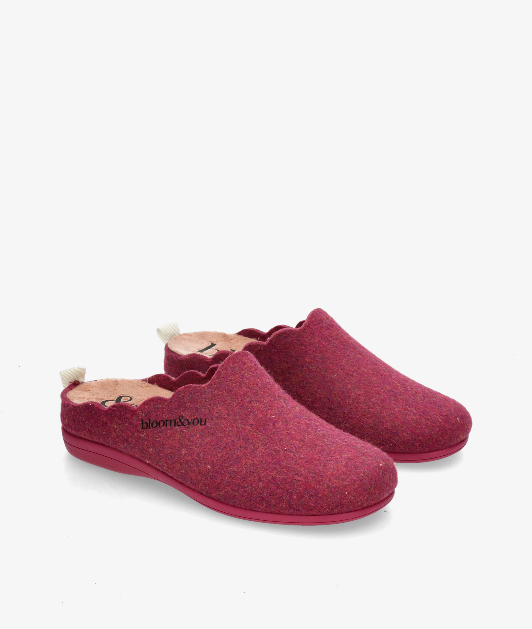 Zapatillas de casa bloom&you BLOOM SLIPPERS en burdeos. Cuña 3,5cm. Sin cierre, slip on. La plantilla es extraible. Hecho en España.