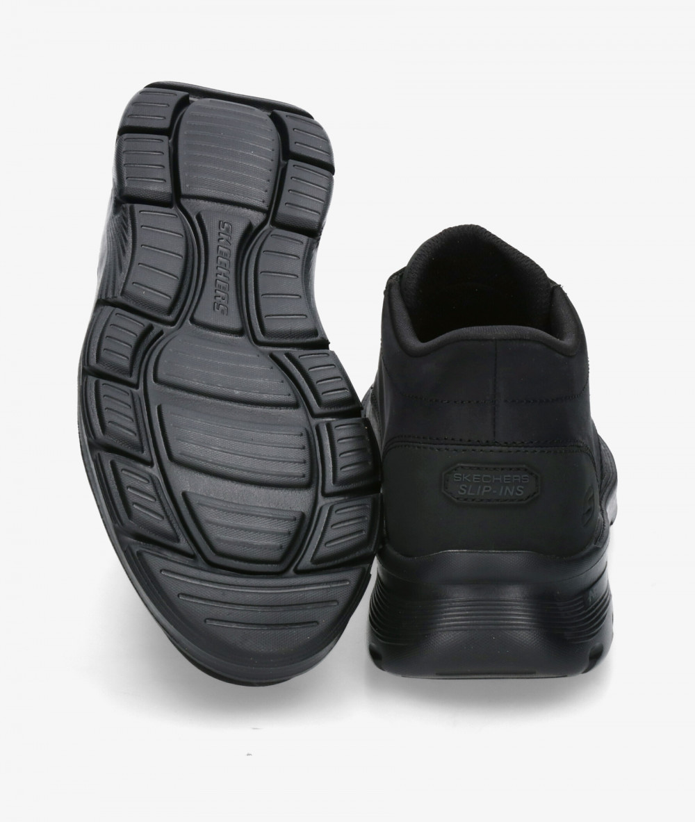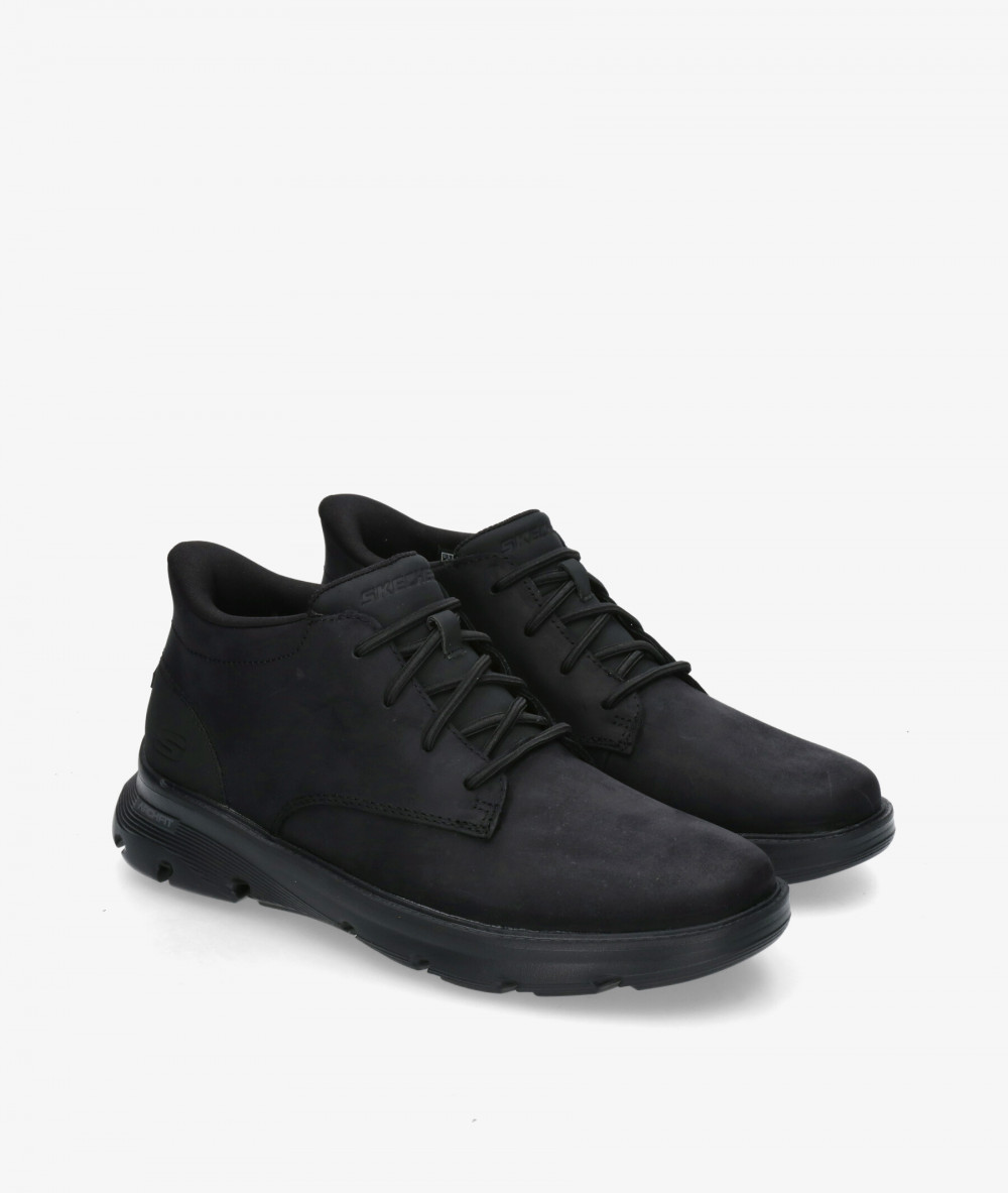 Botas Skechers 205514 en negro. Plantilla: Air-cooled memory foam. Características: suela de Poliuretano, Forro y planta textil y exterior Piel Lisa. .