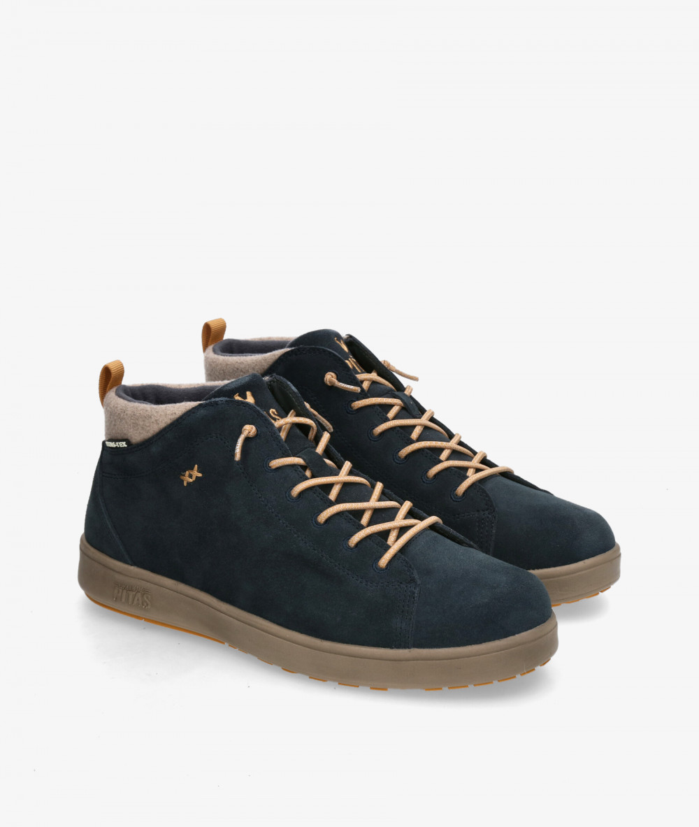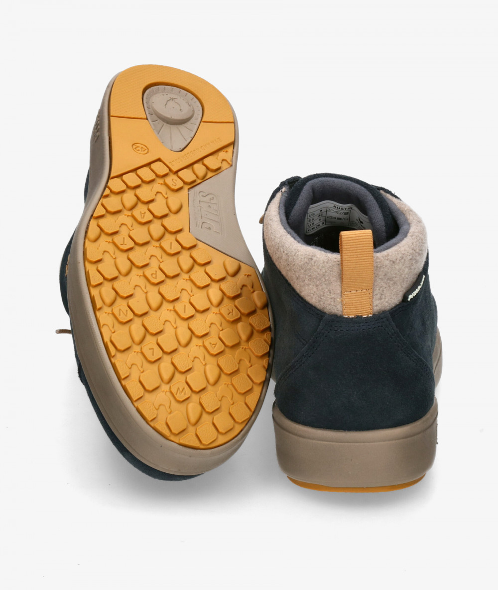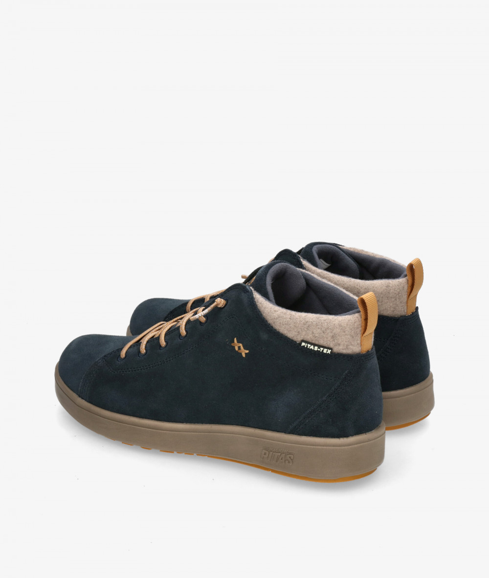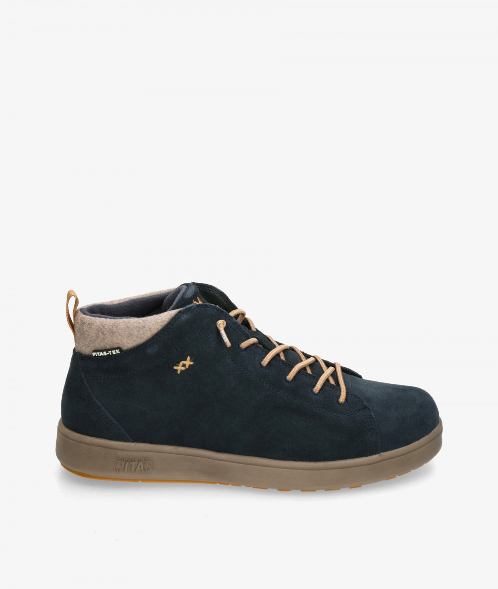 Zapatos casual Walk in Pitas AUSTIN en serraje azul. Cierre con cordones. La plantilla es extraible. Hecho en China