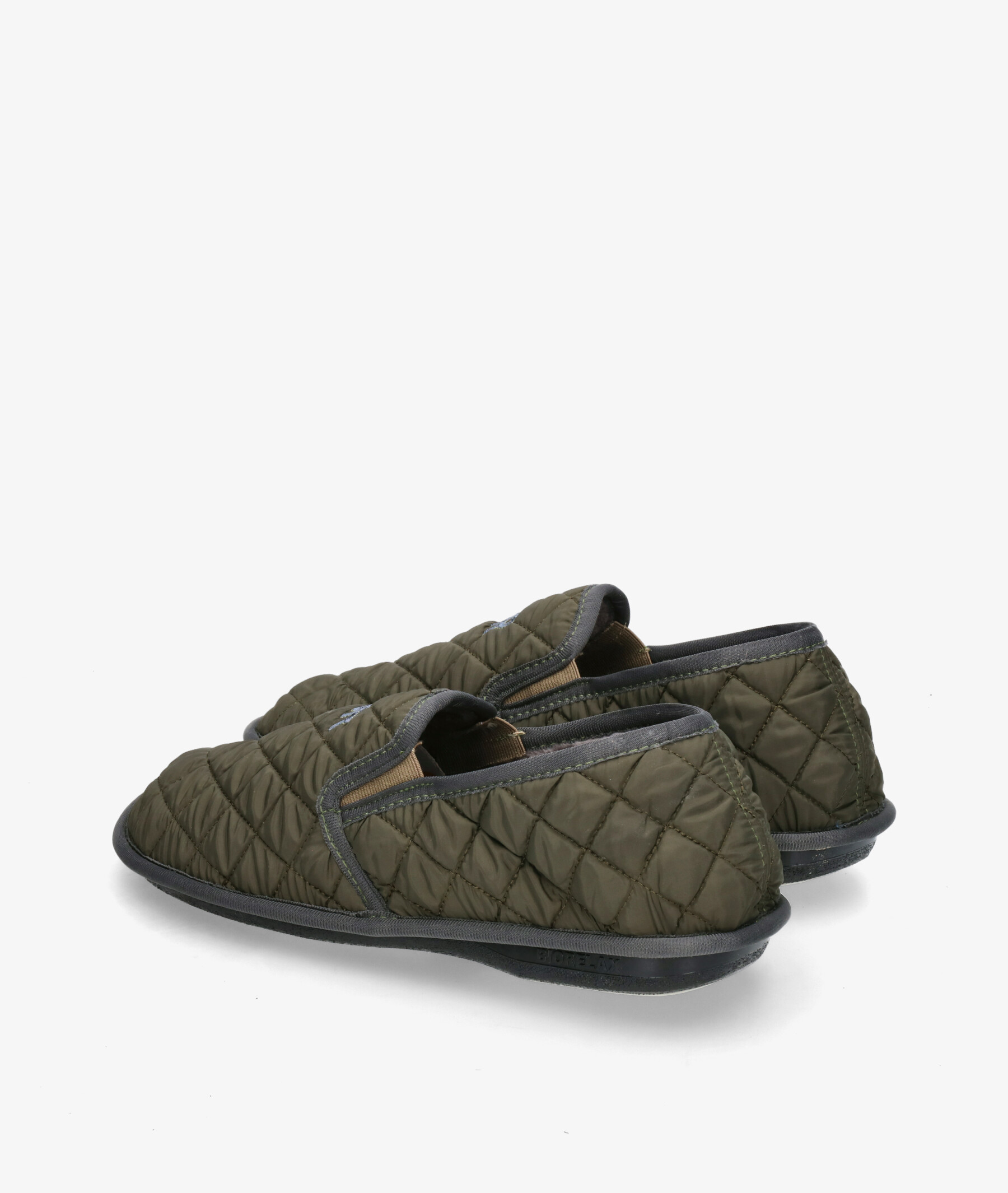 Zapatillas de casa Bio Relax 1566 en caki. Cierre con elásticos . La plantilla no es extraible. Hecho en España.