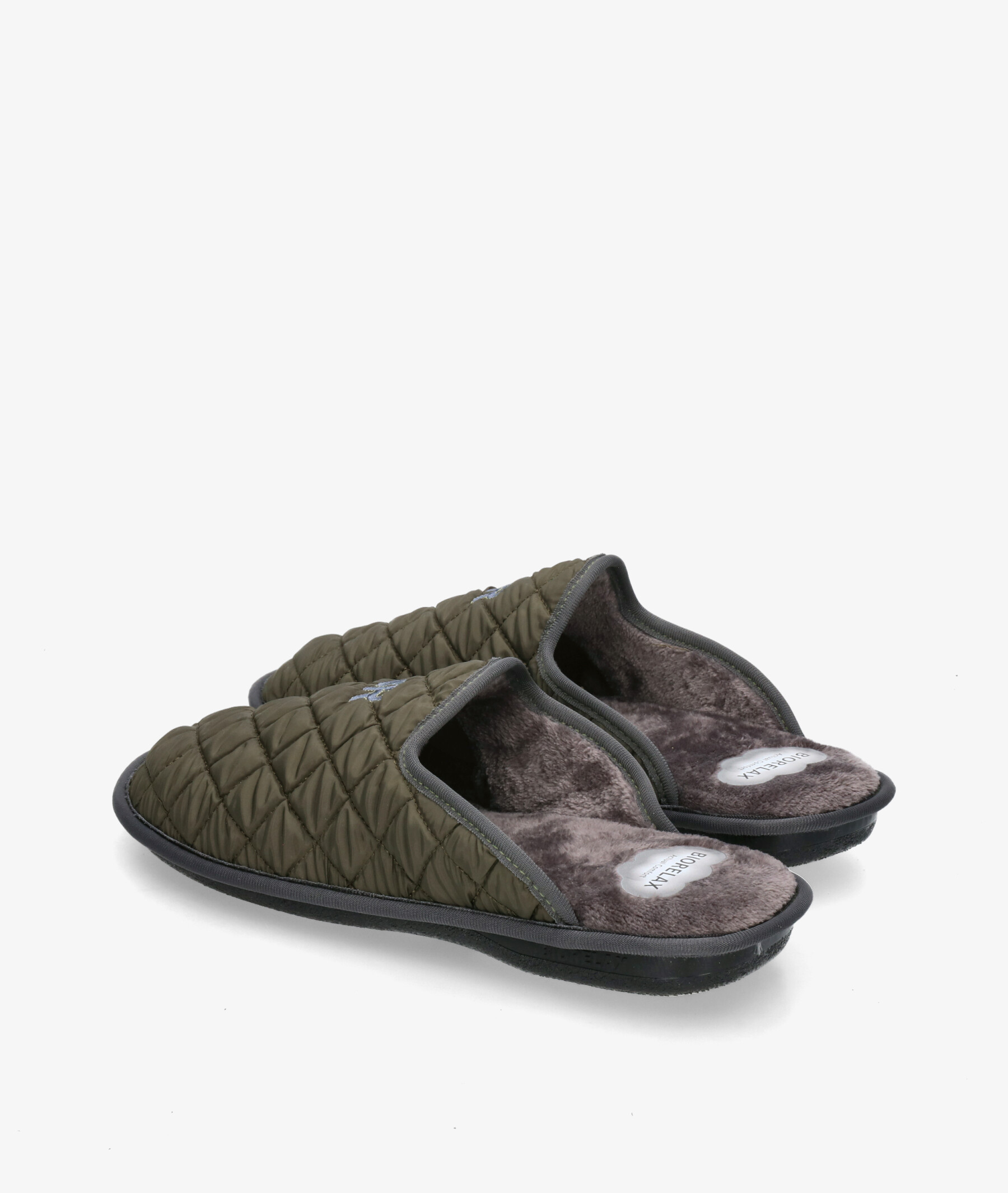 Zapatillas de casa Bio Relax 1448 en caki. Sin cierre, slip on. La plantilla no es extraible. Hecho en España.