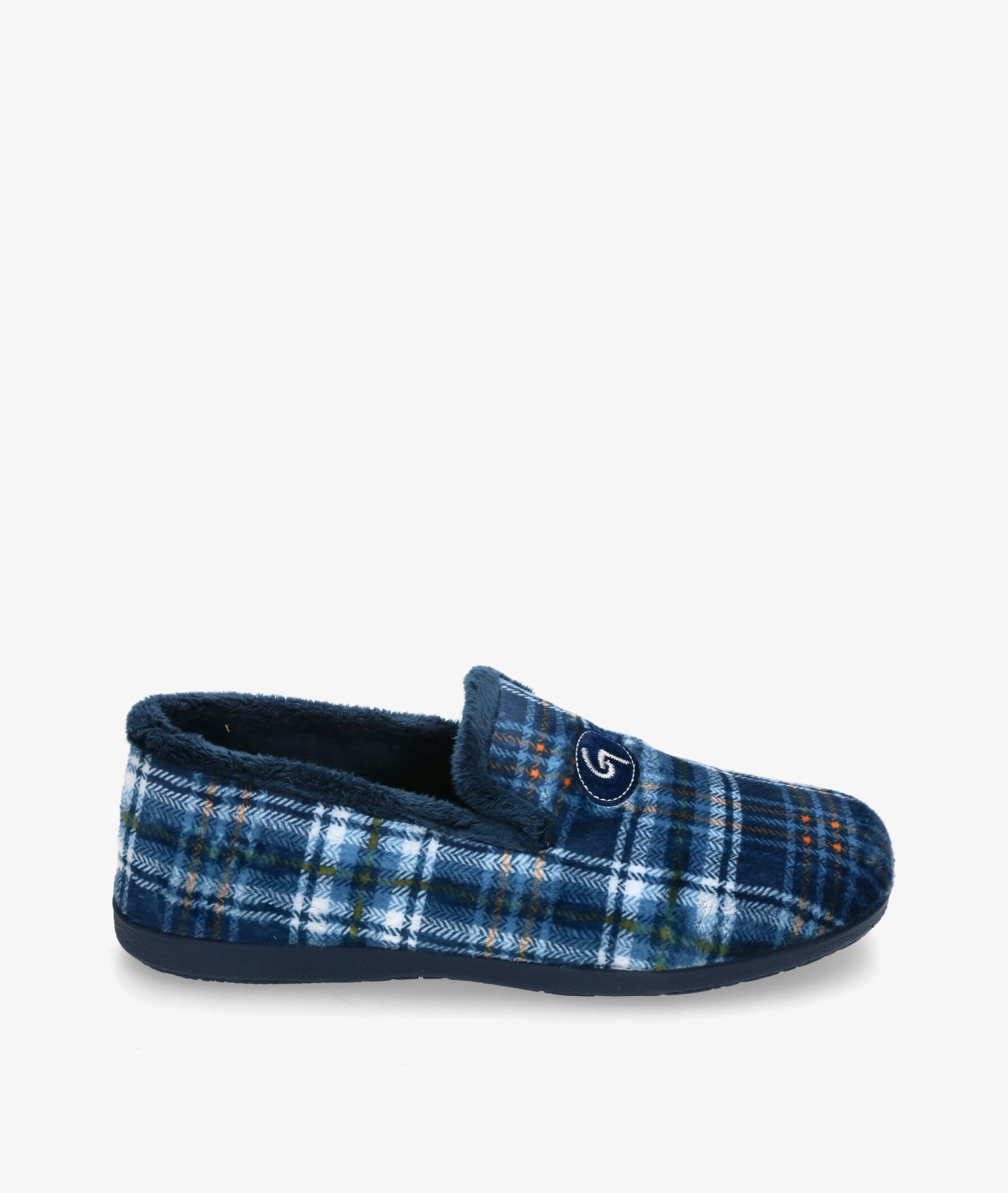Zapatillas de casa Garzón 6501.374 en azul marino. Sin cierre, slip on. La plantilla no es extraible. Hecho en España.