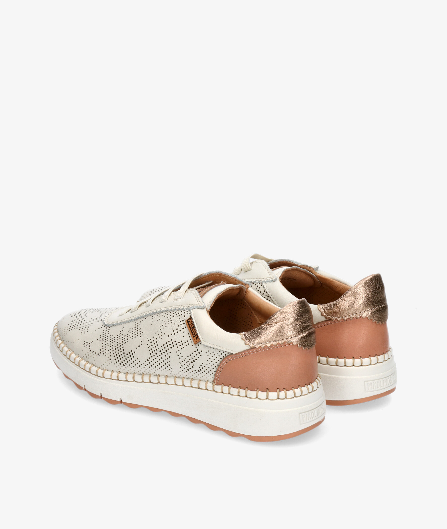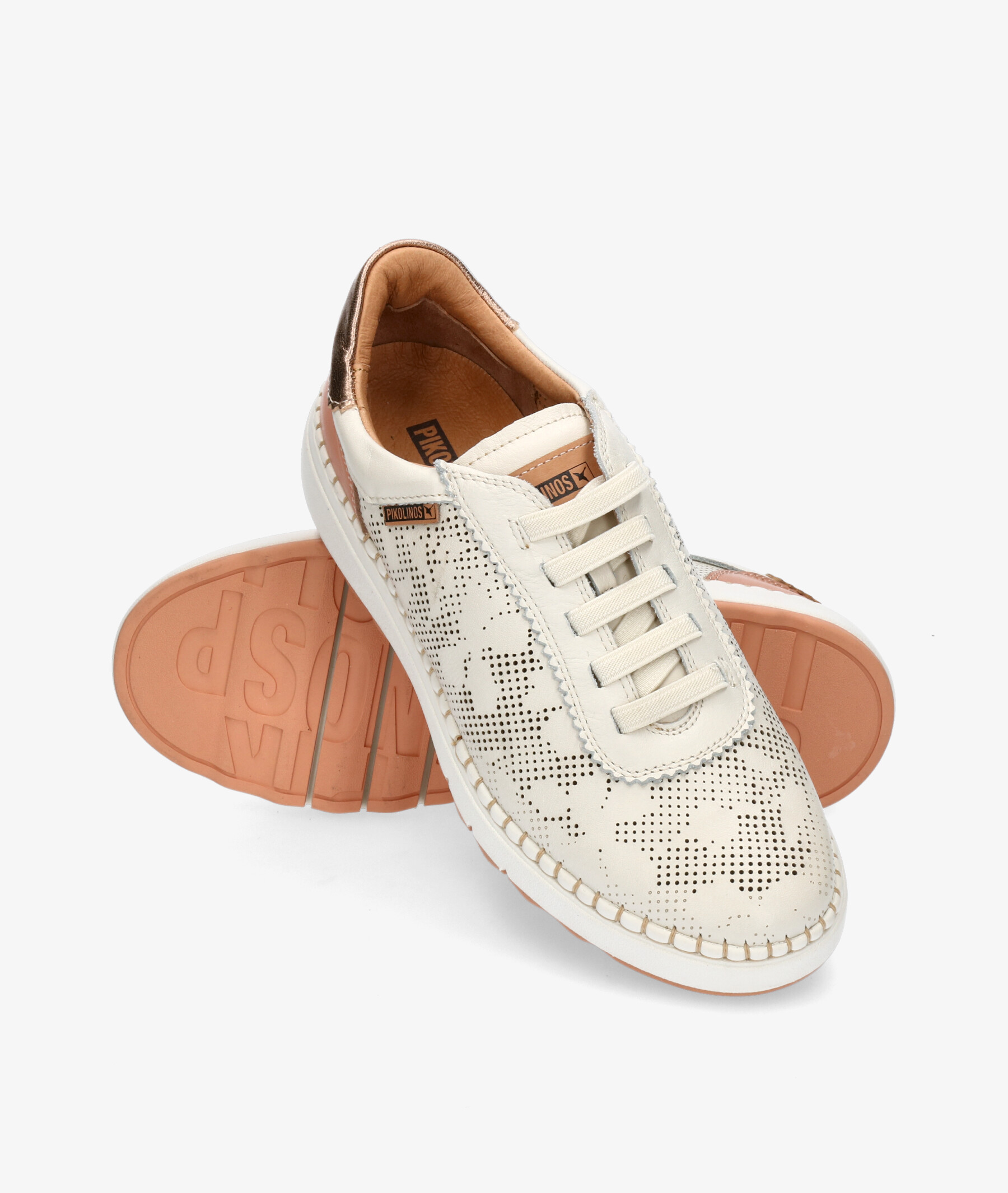 Deportivos Pikolinos W0C-6621 C1 en hueso. Cierre con cordones. La plantilla es extraible.