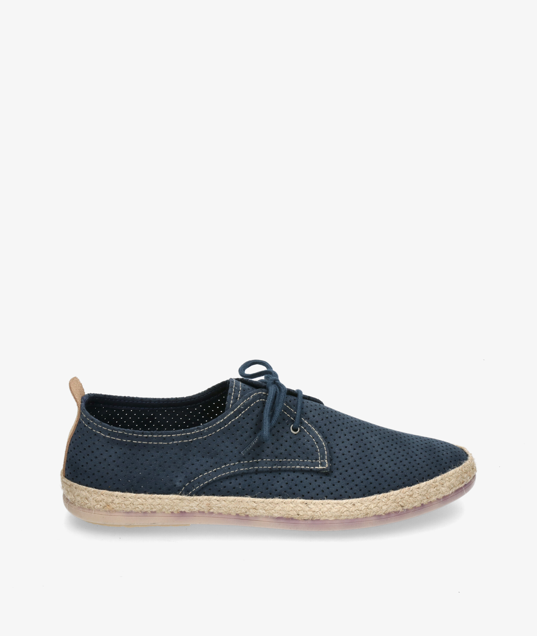 Alpargata Walk Flex 13401.199 en azul marino. Cierre con cordones. La plantilla no es extraible. Hecho en España.