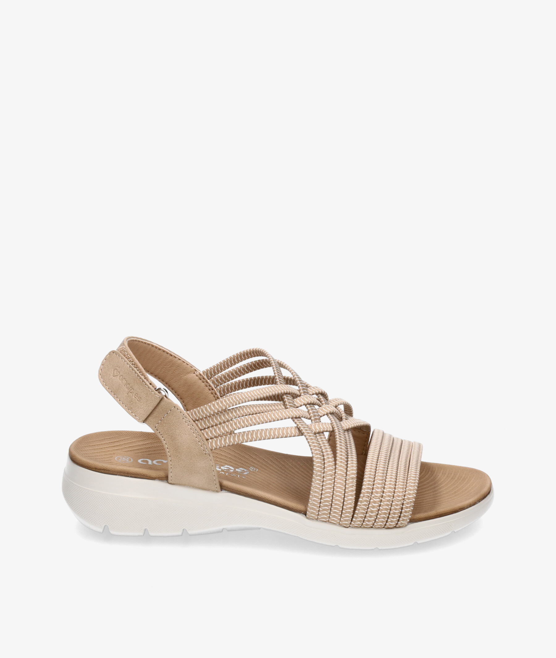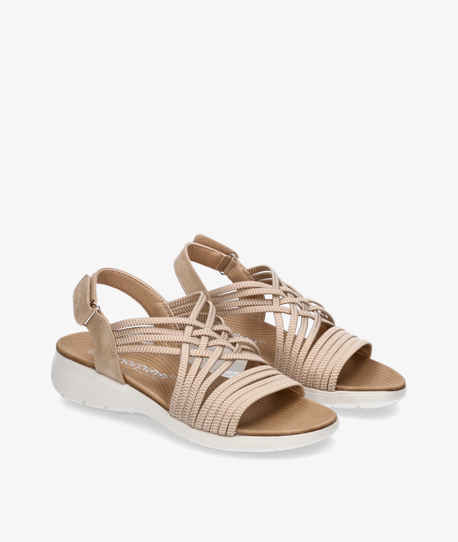 Sandalias Amarpies 26583 en beige. Cuña 4cm. Cierre con velcro. La plantilla no es extraible. Hecho en China