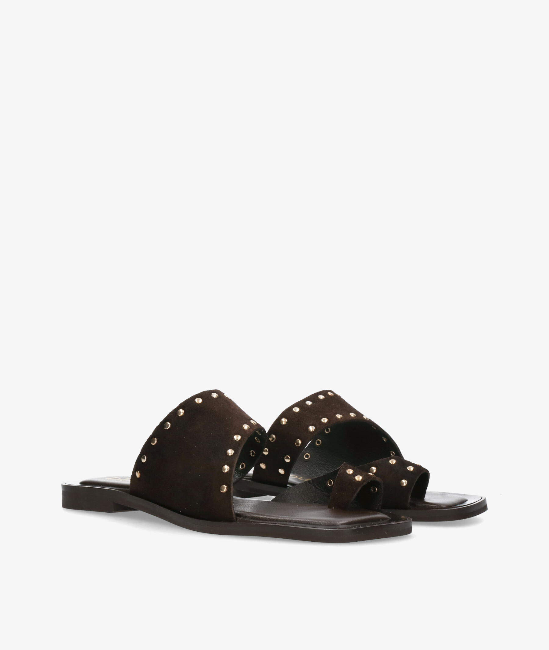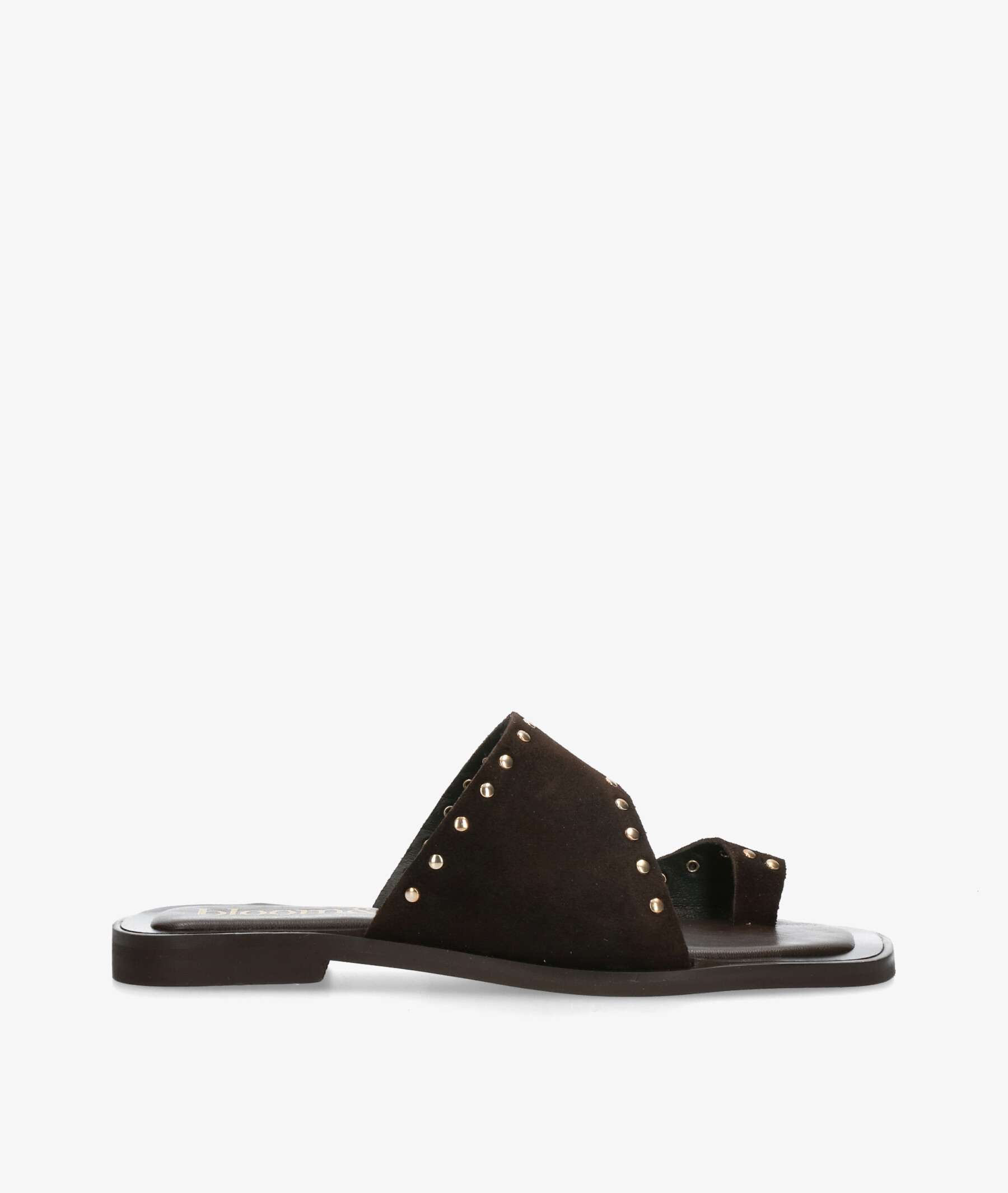 Sandalias bloom&you OLEA en serraje marrón. Altura tacón 1,5cm. Sin cierre, slip on. La plantilla no es extraible. Hecho en España.