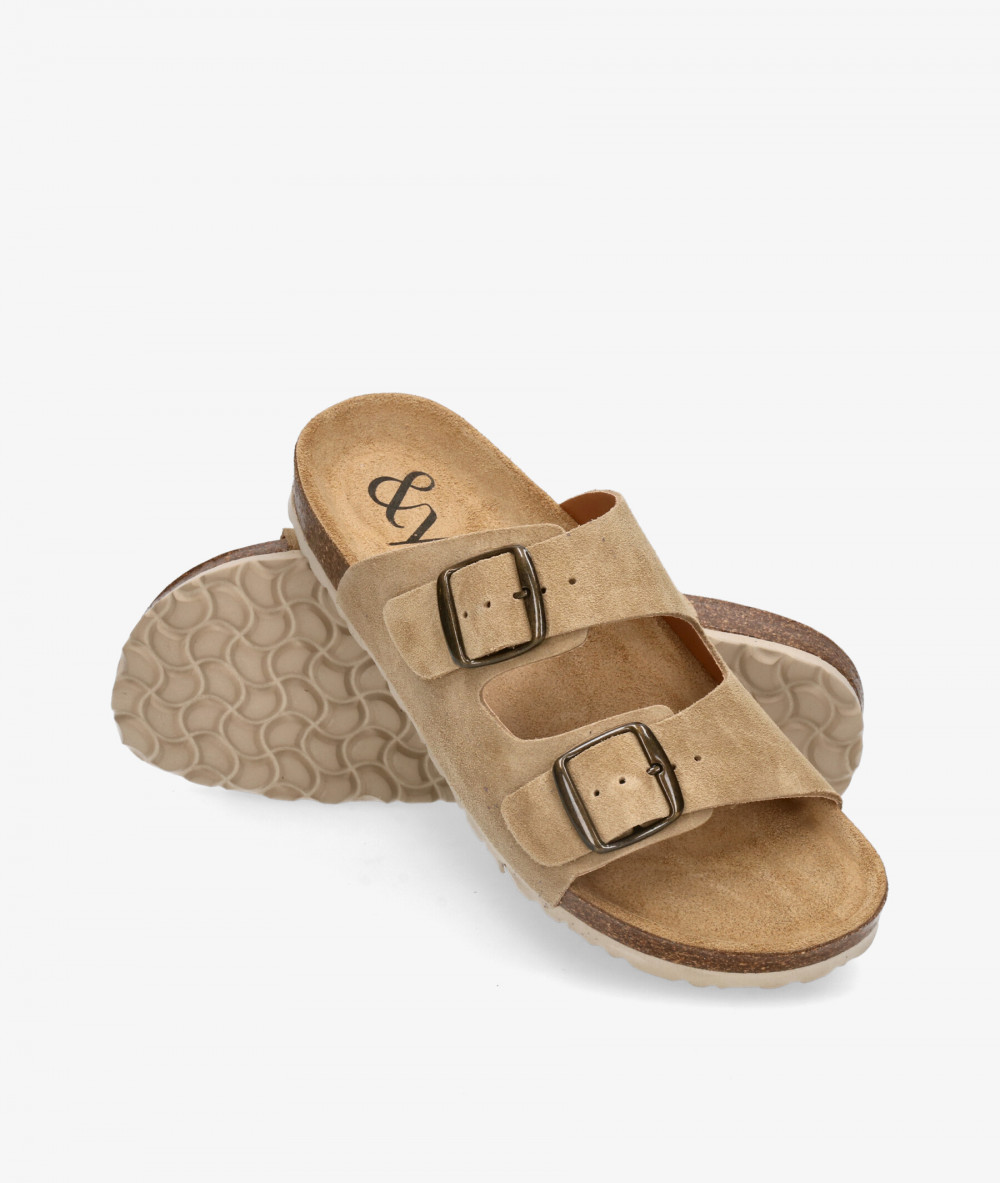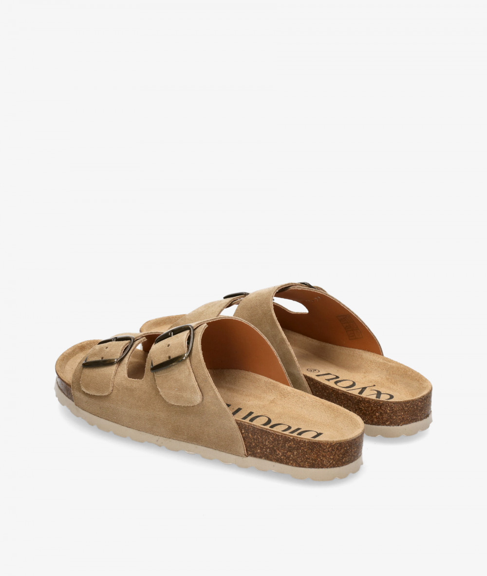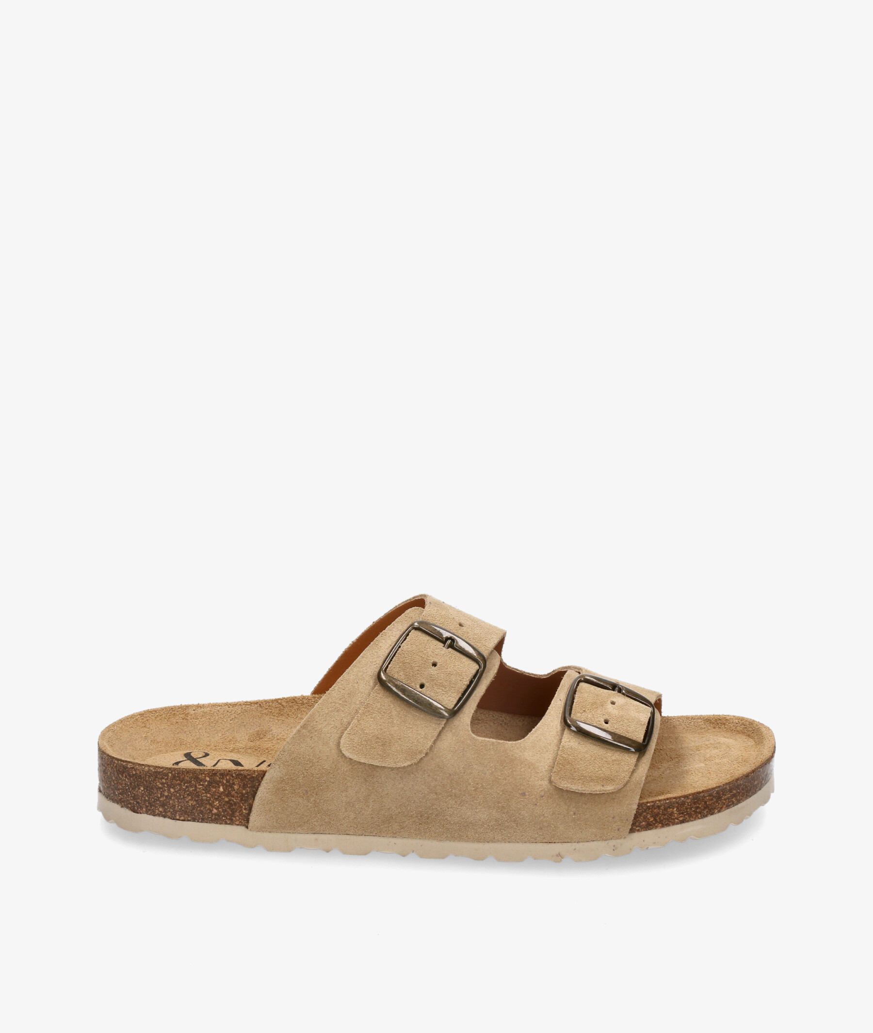 Sandalias bloom&you 700015 en serraje taupe. Altura plataforma 3cm. Sin cierre, slip on. La plantilla no es extraible. Hecho en España.