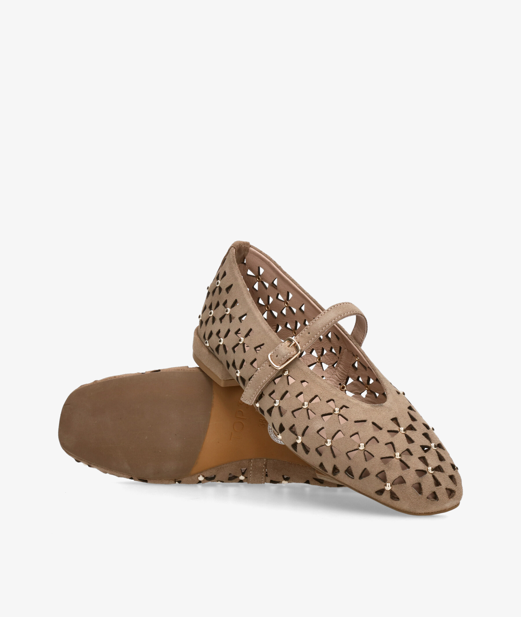 Merceditas pabloochoa.shoes SR1582 en serraje taupe. Cierre con hebilla en un lateral. La plantilla no es extraible. Hecho en India
