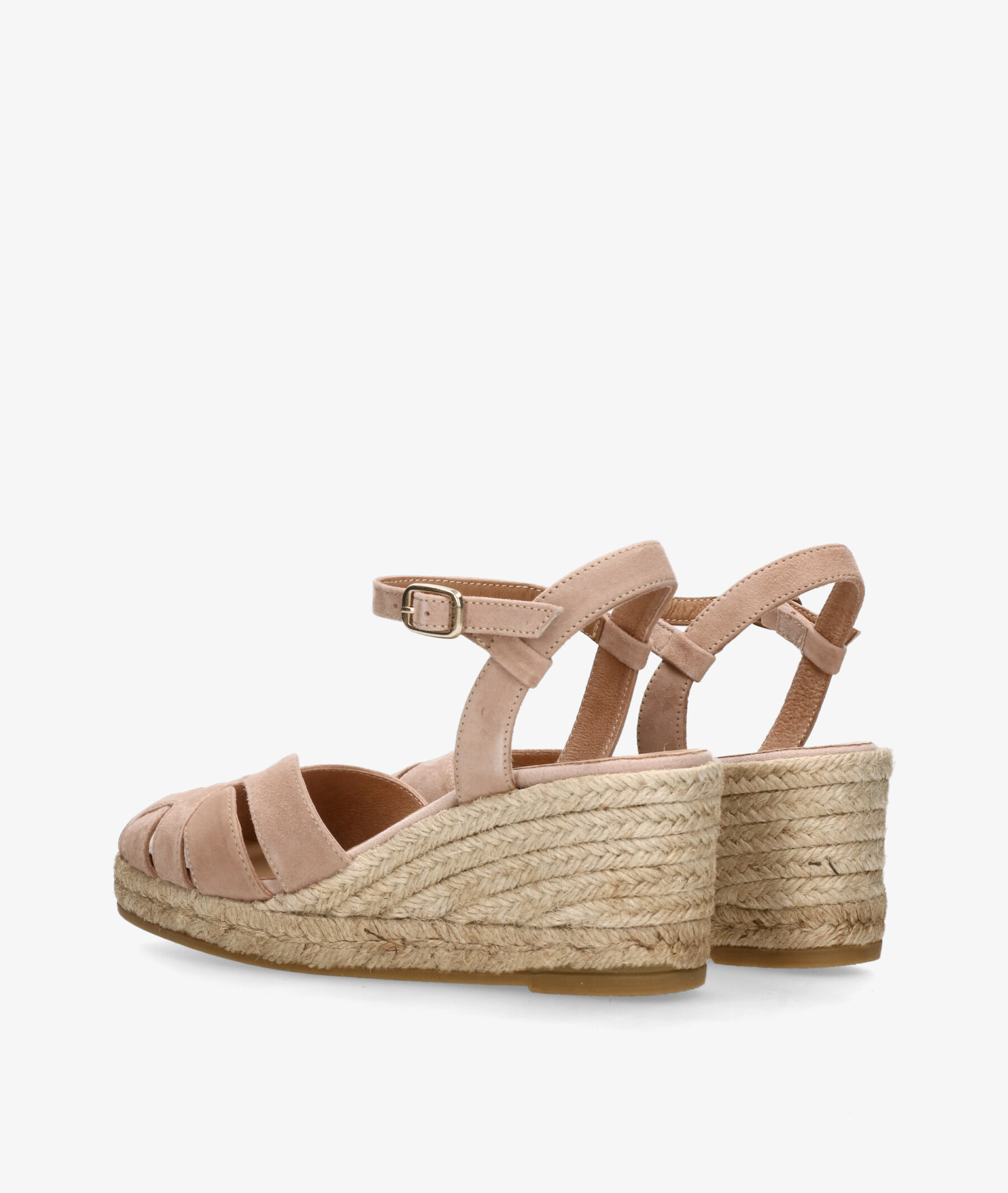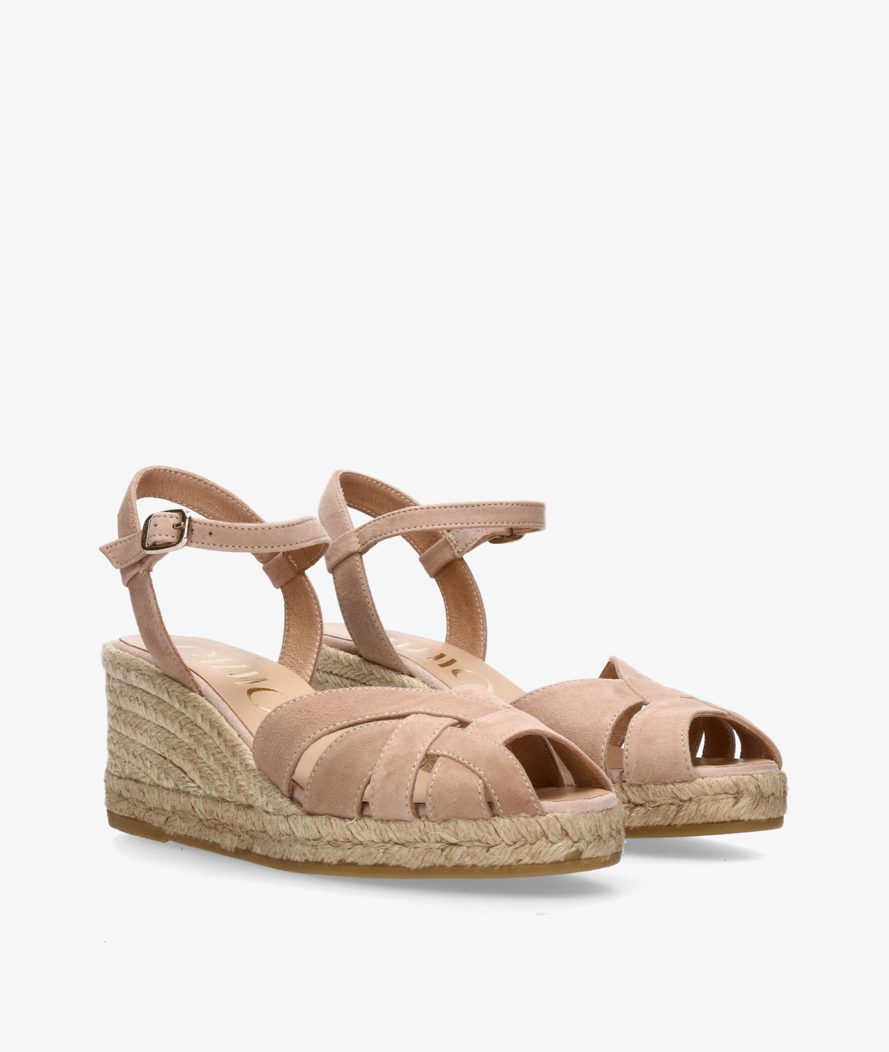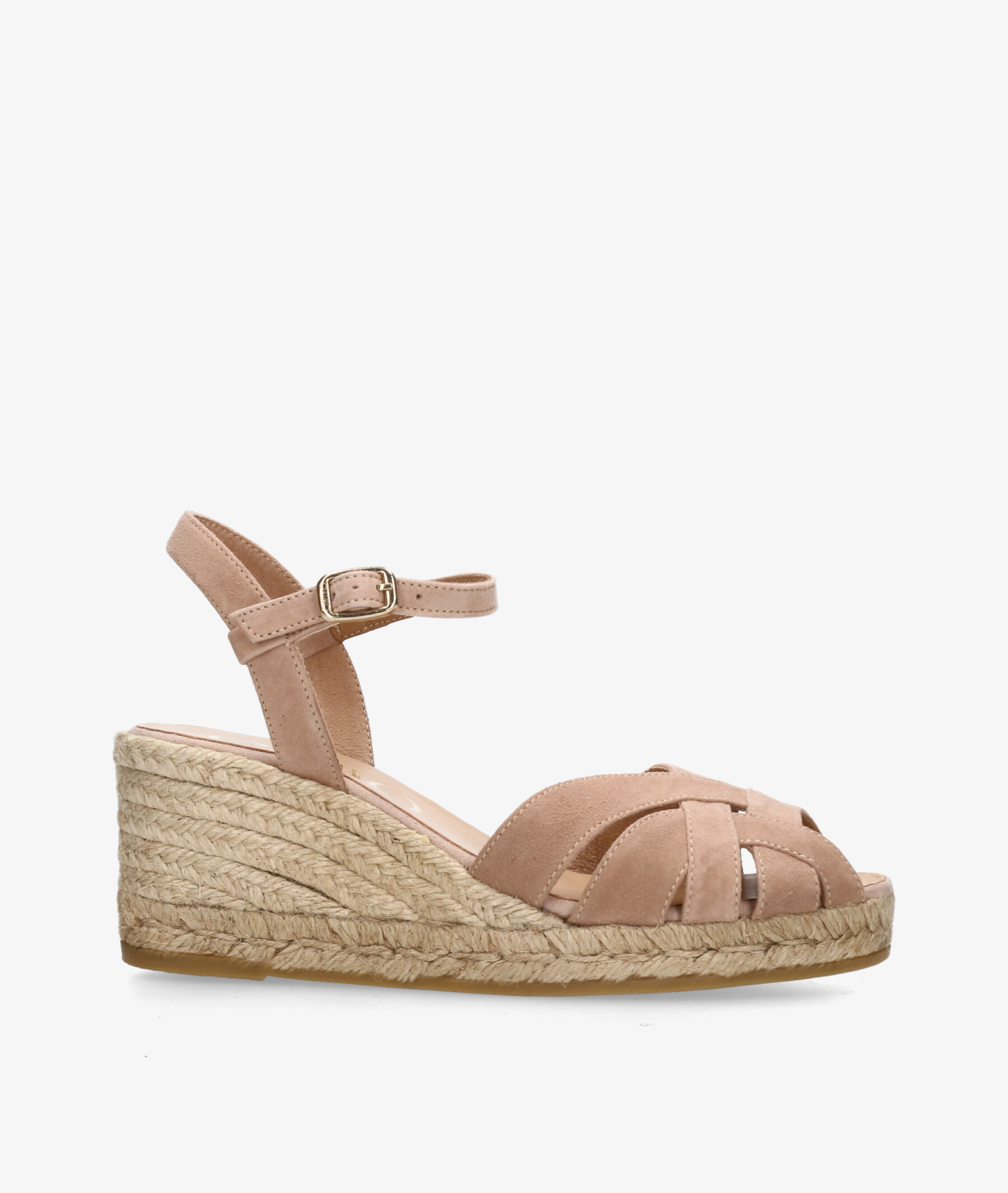 Alpargatas Gaimo TERA en ante nude. Cuña 7cm, plataforma 1,5cm. Cierre con hebilla en un lateral. La plantilla no es extraible. Hecho en España.