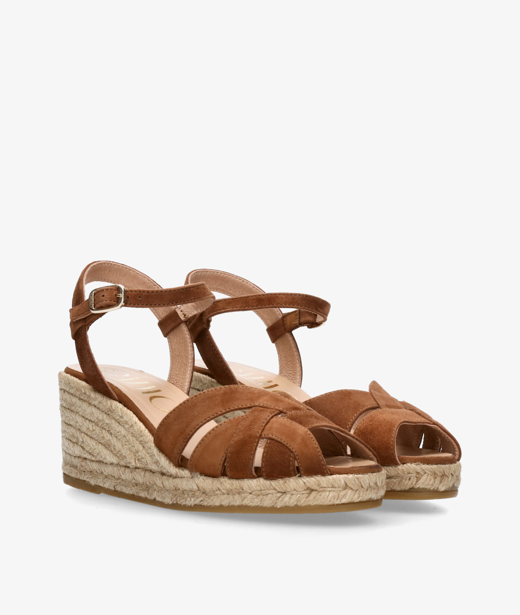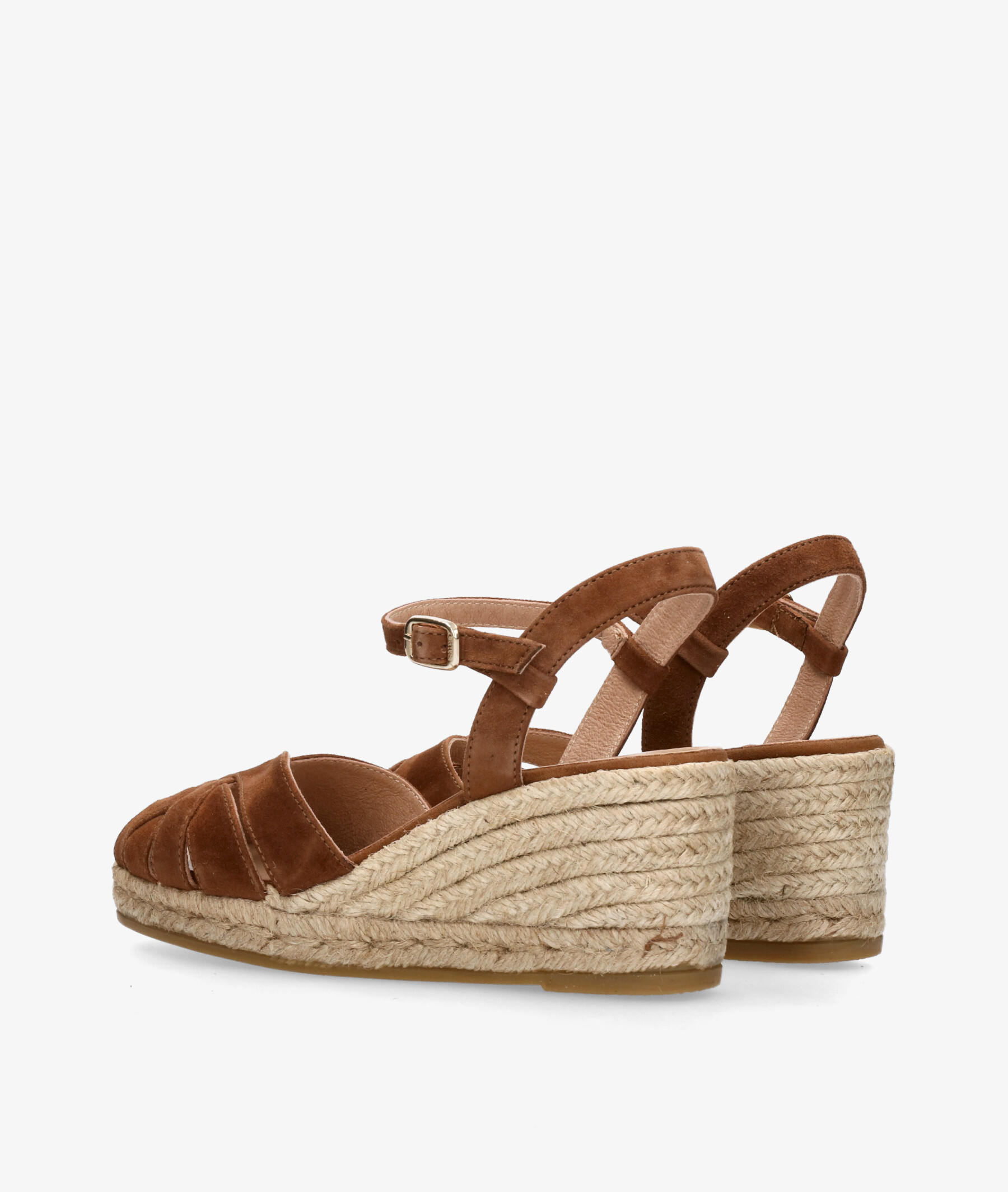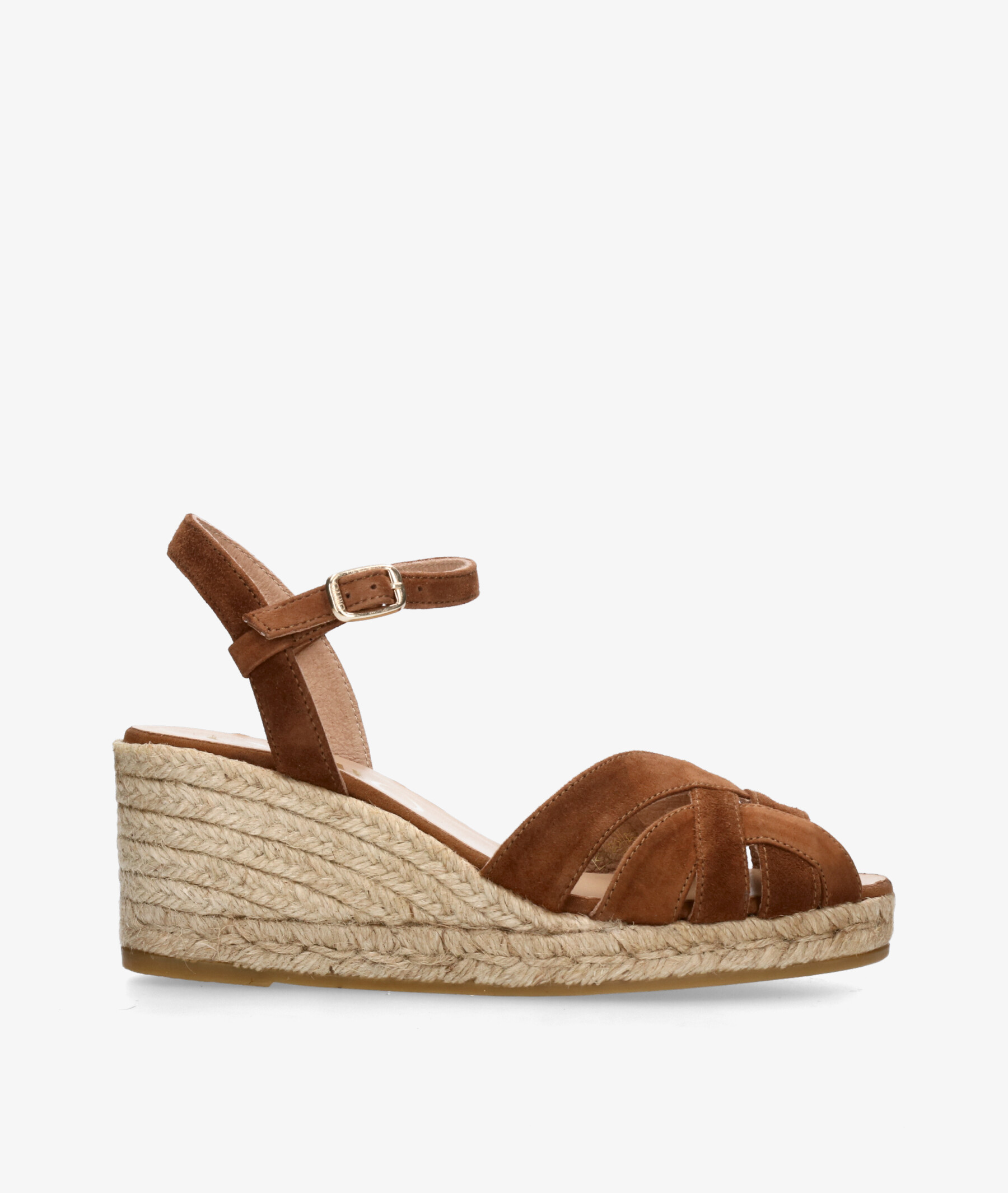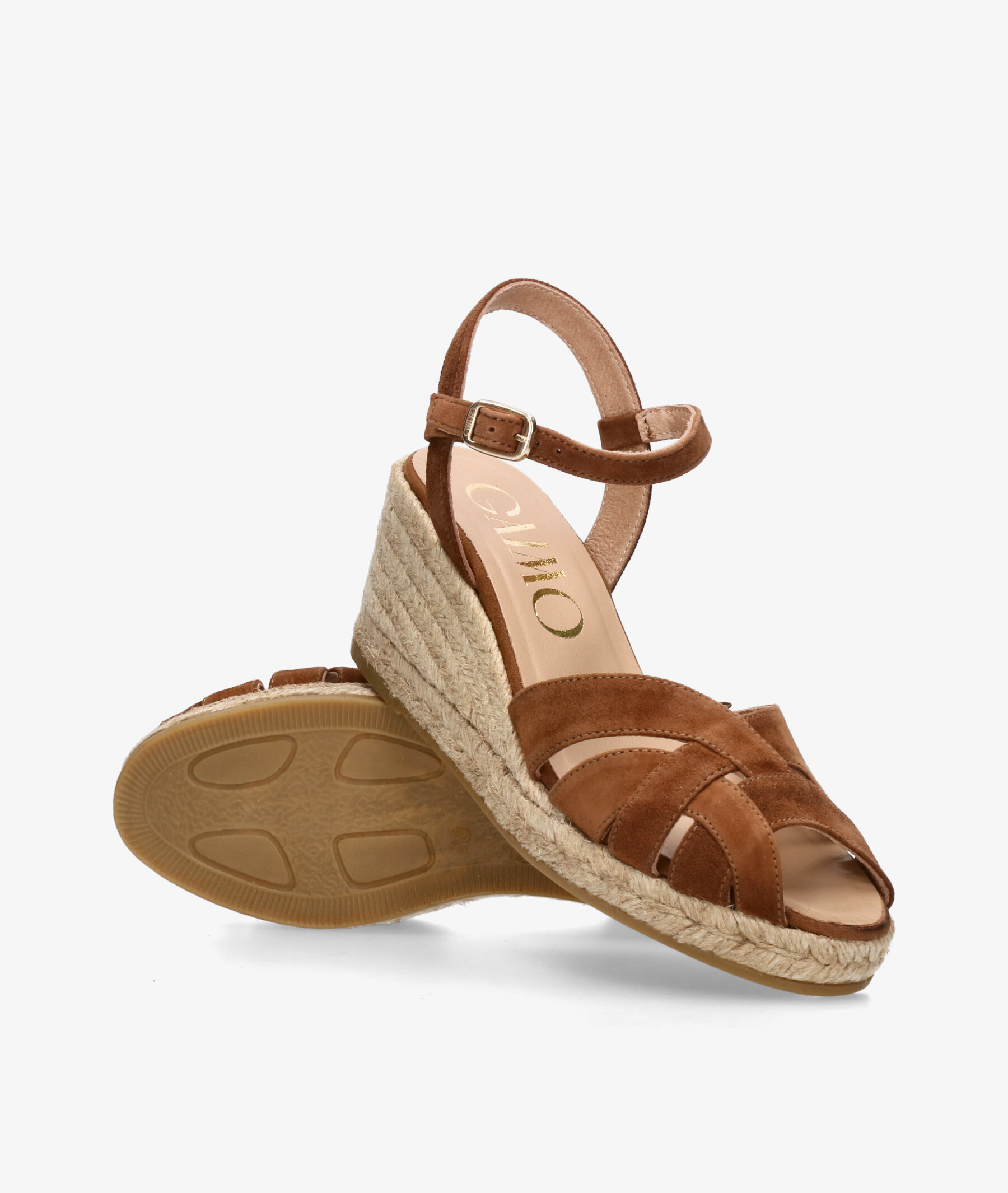 Alpargatas Gaimo TERA en ante cuero. Cuña 7cm, plataforma 1,5cm. Cierre con hebilla en un lateral. La plantilla no es extraible. Hecho en España.