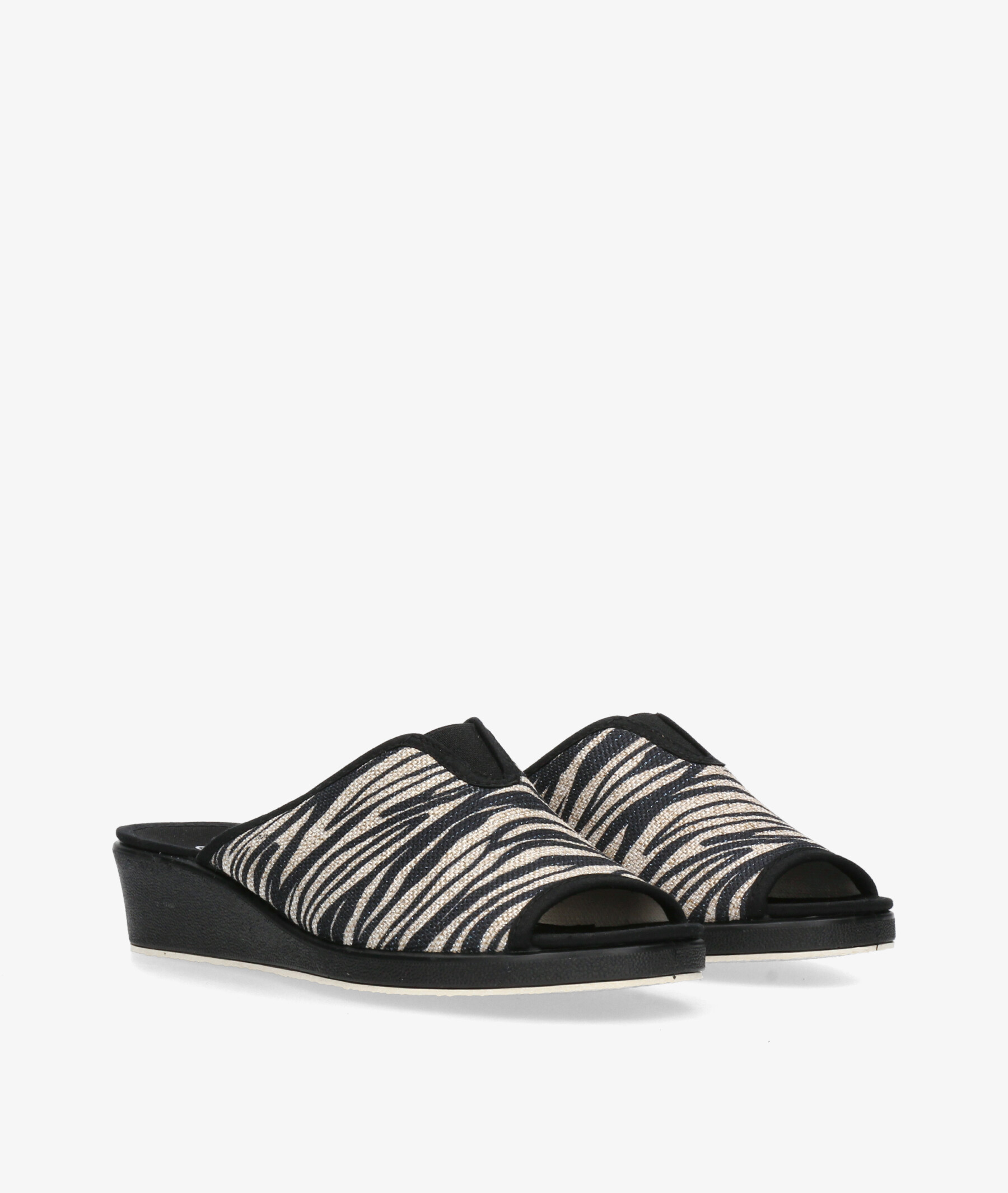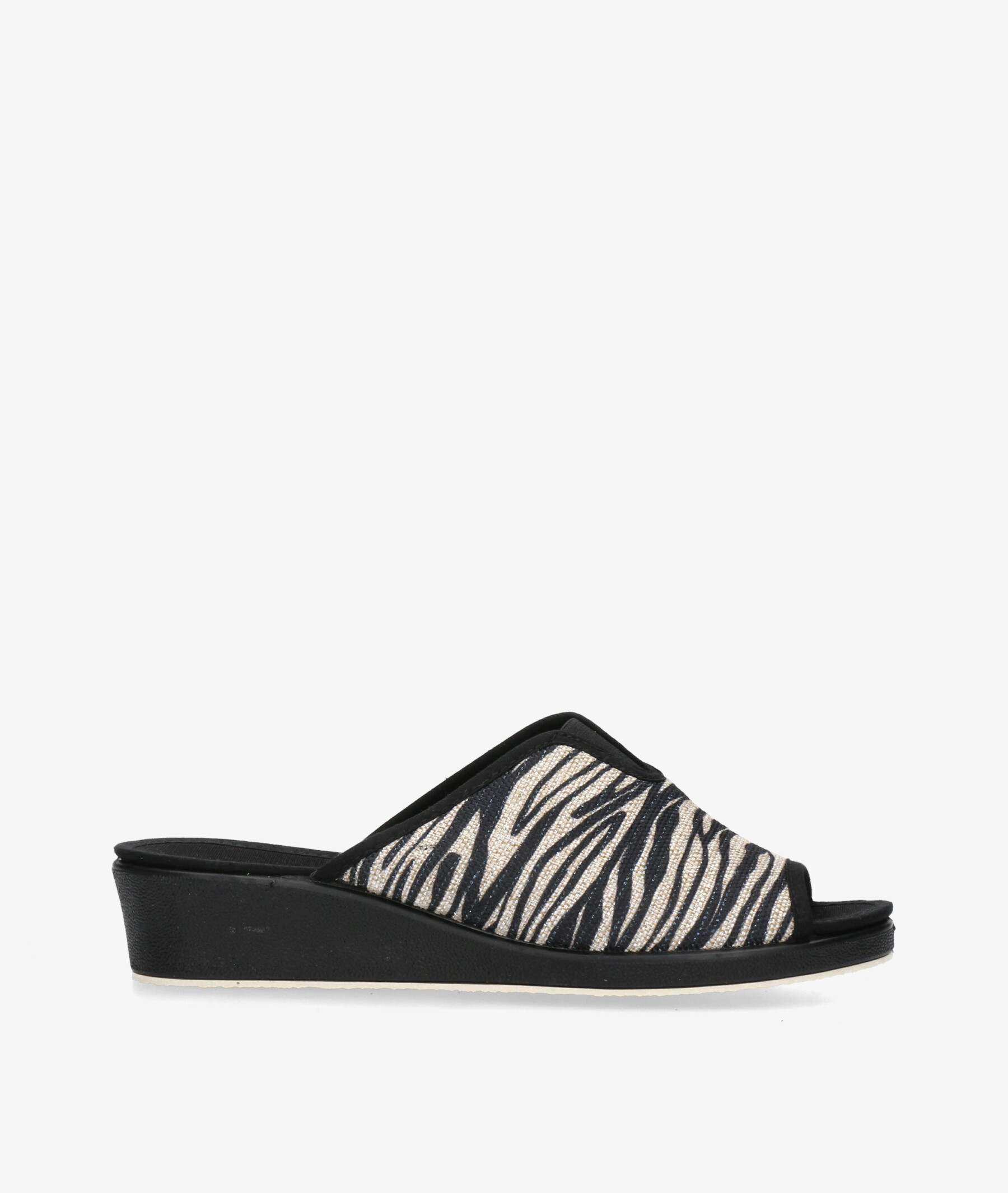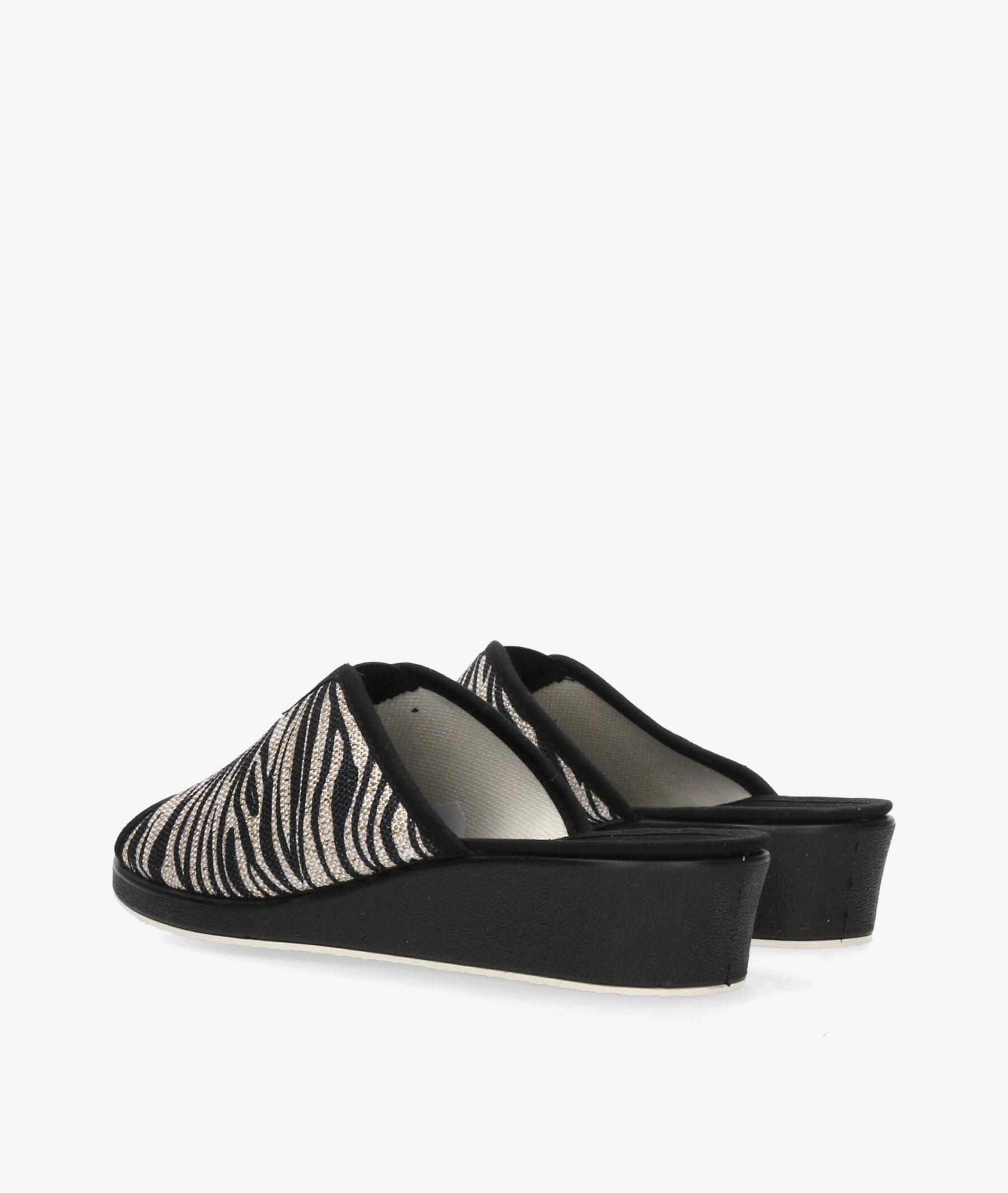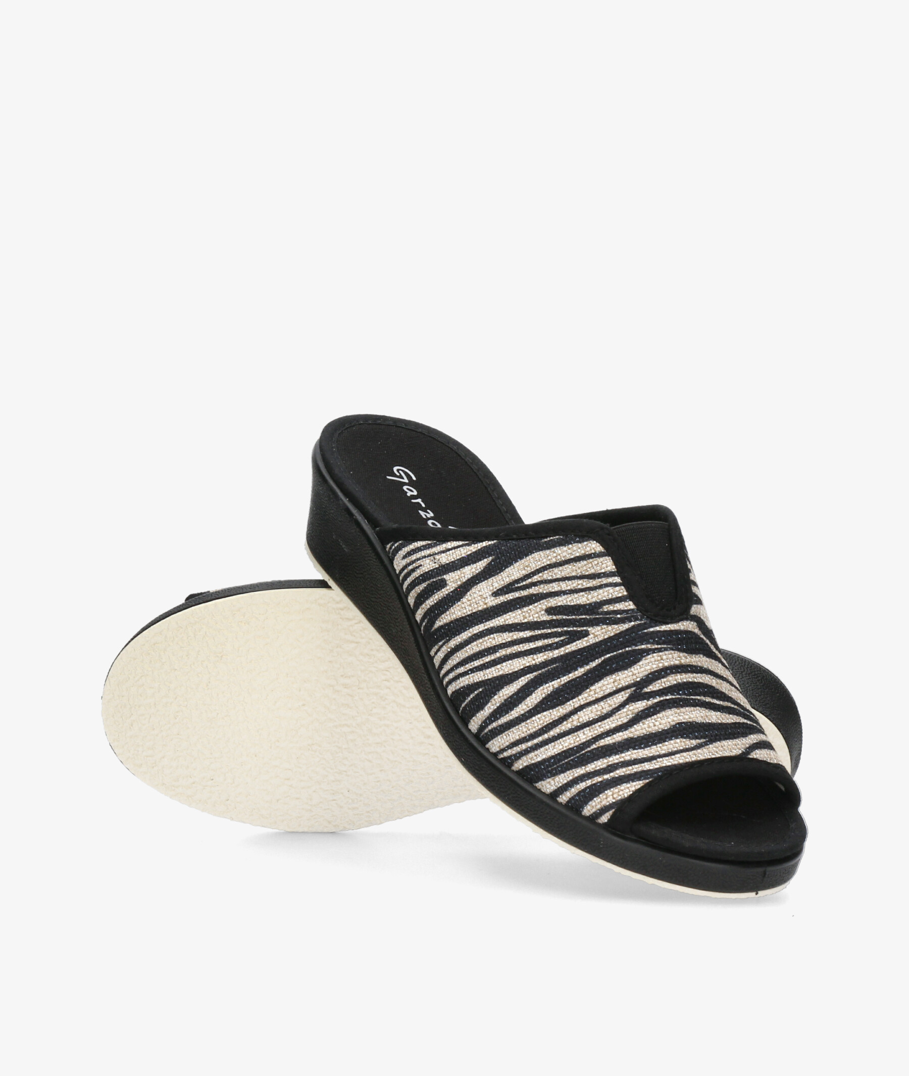pinky Garzón 1890.181 en cebra. Cuña 4cm. Sin cierre, slip on. La plantilla no es extraible. Hecho en España.