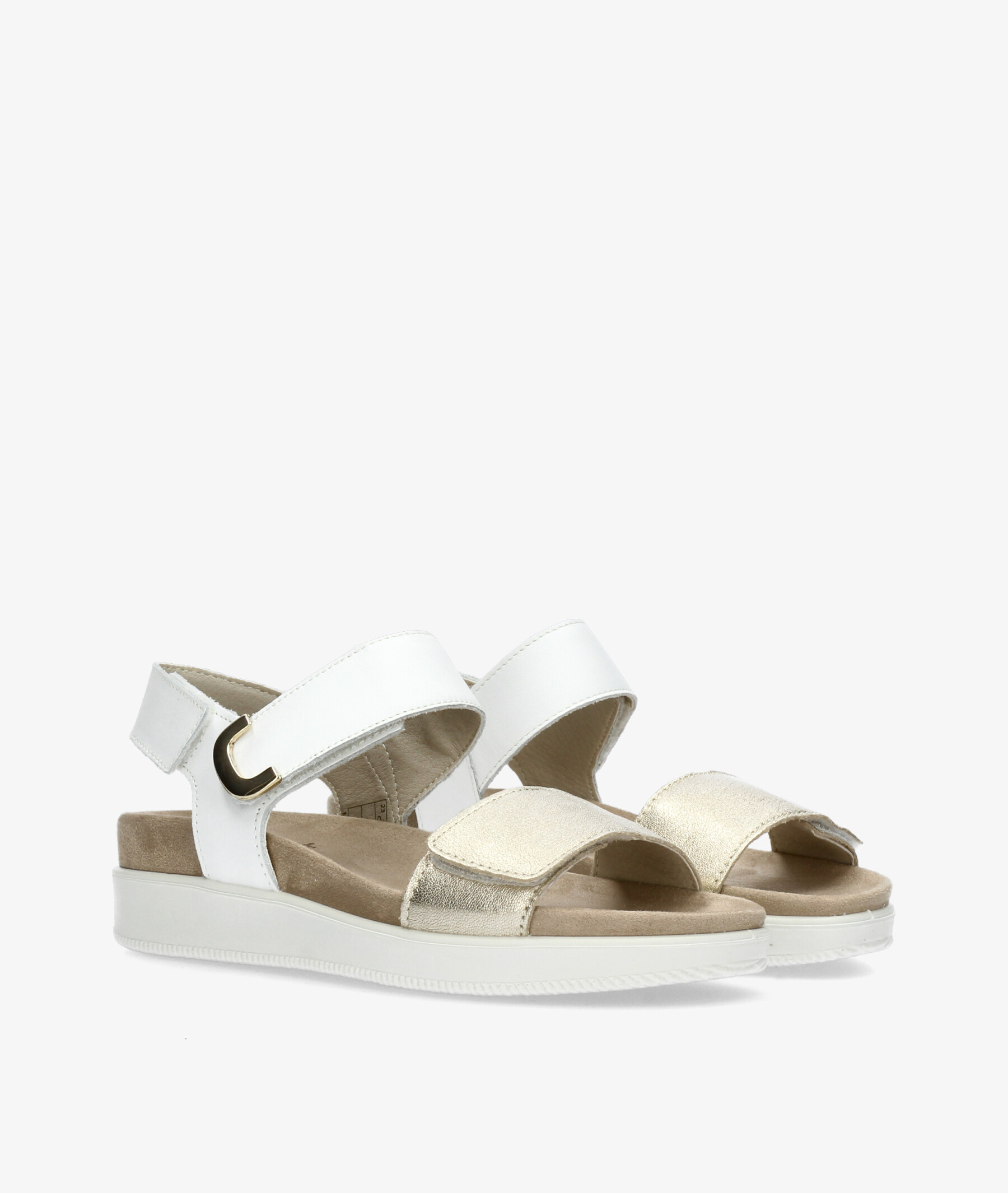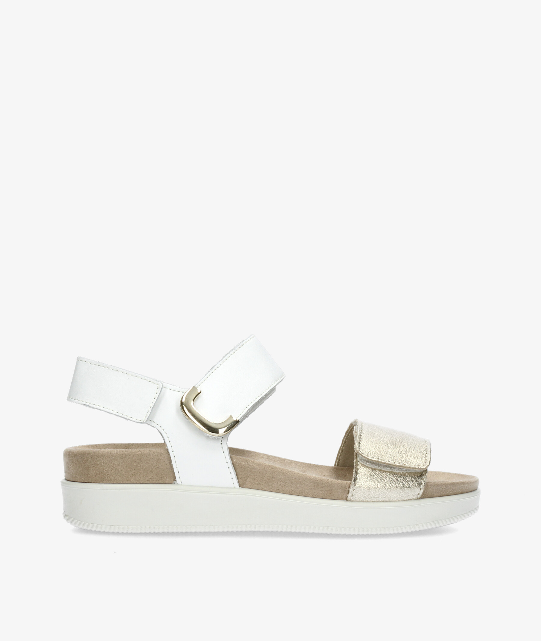 Sandalias Imac 108700 en platino. Cuña 4,5cm. Cierre con velcro. La plantilla no es extraible. Hecho en Italia.