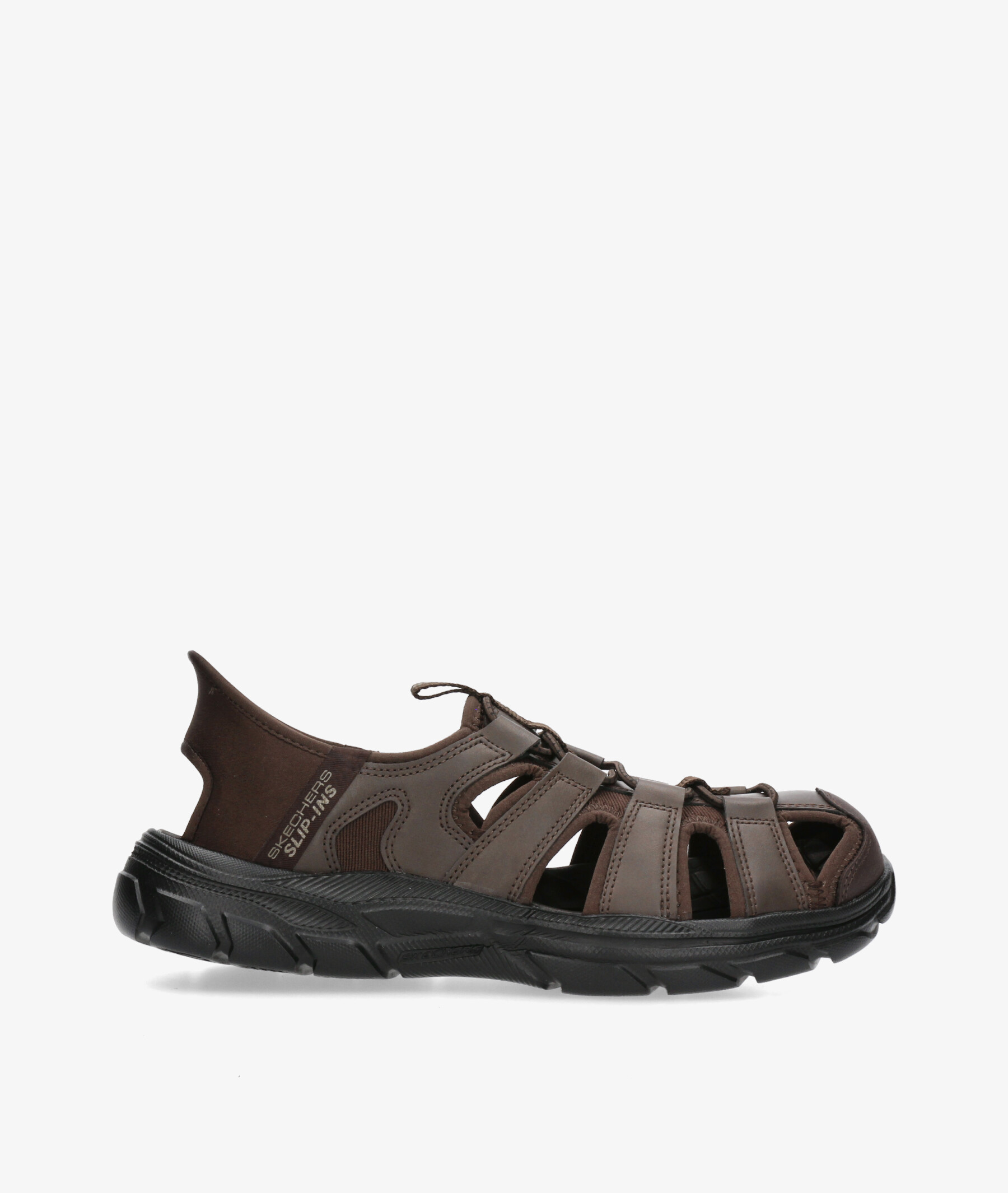 Sandalias Skechers 205182 en marrón. Plantilla: Luxe foam. Características: suela de Goma ligera y flexible, Forro textil, planta poliuretano y exterior Textil, Poliuretano. Hecho en China.