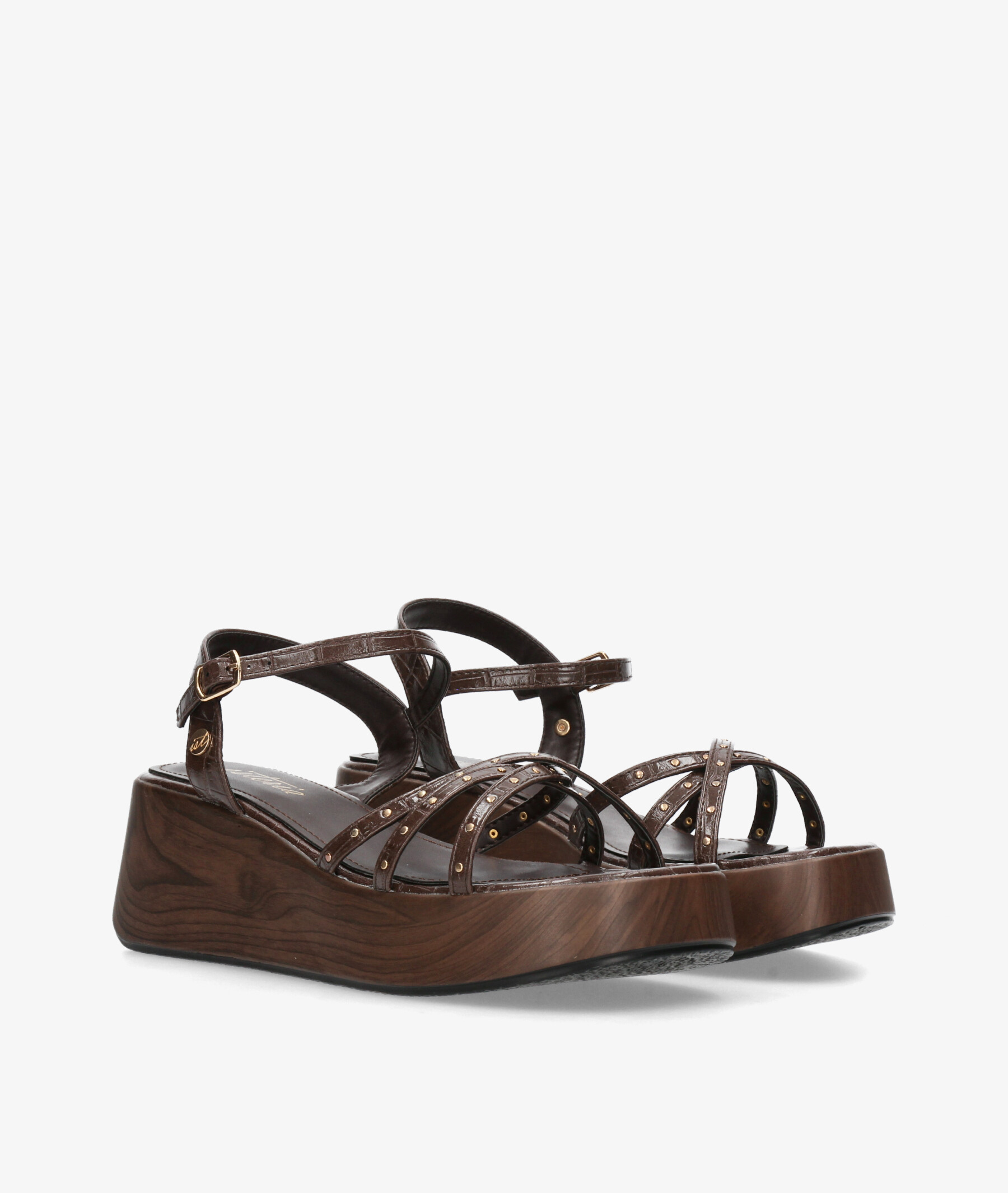 Sandalias ISTERIA 1111 en coco marrón. Cuña 6cm, plataforma 3cm. Cierre con hebilla en un lateral. La plantilla no es extraible. Hecho en China